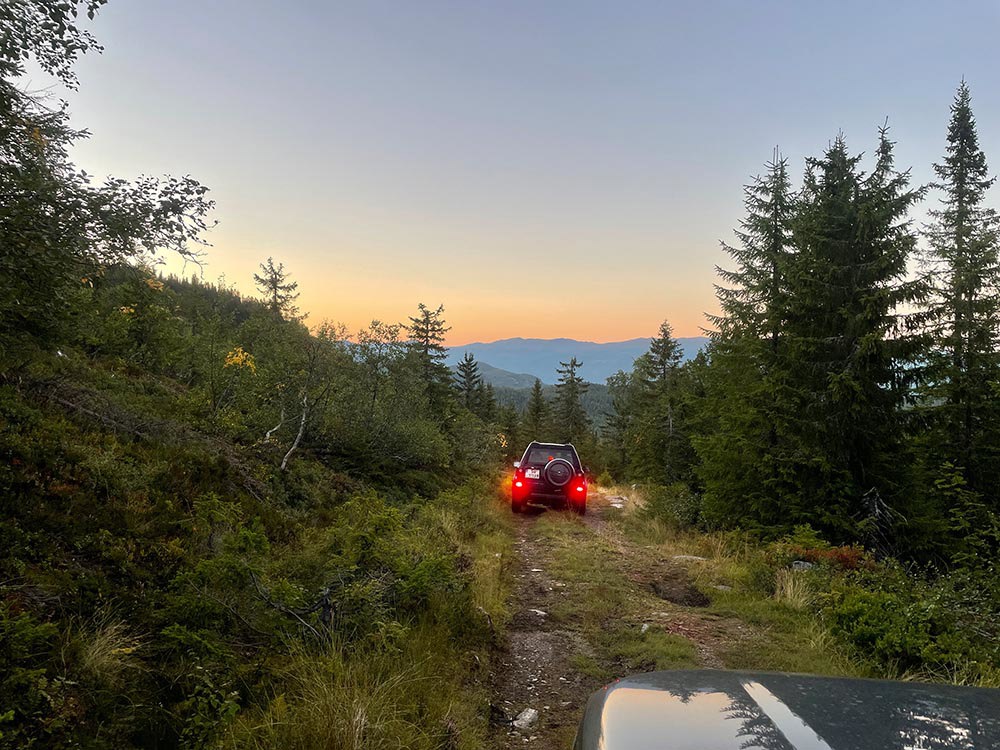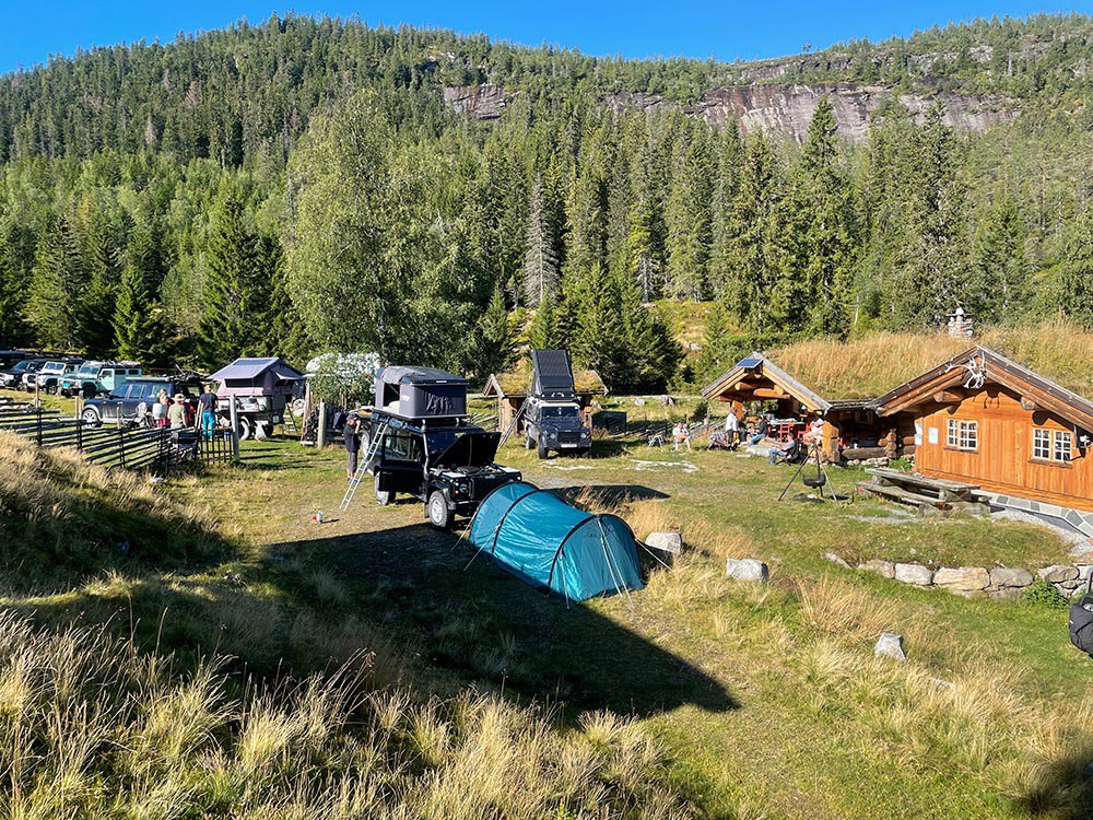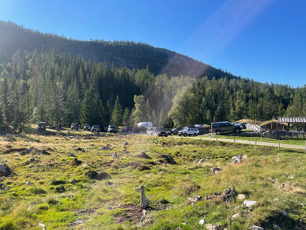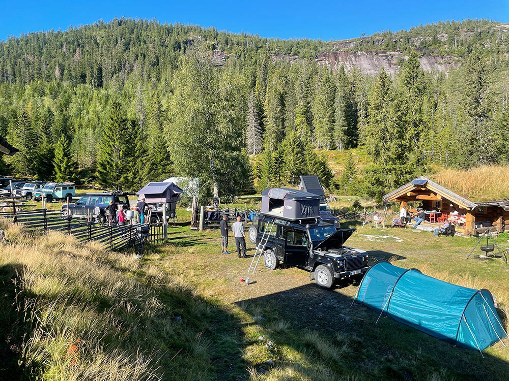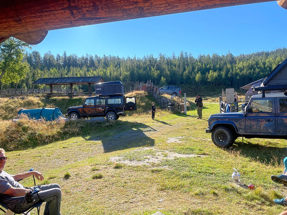 Nattsafari 2022 Årets nattsafari gikk av stabelen i Eggedal nærmere bestemt Grøset seter. Grøset ligger idyllisk til ved foten av Andersnatten og ved inngangen til Trillemarka naturreservat. Siste helgen i august var da denne flotte helgen skulle ta sted. Treffet ble arrangert som et helgetreff, og det var et meget godt oppmøte på fredag. Vi hadde ikke været helt med oss, så vi fikk trekke inn på setra. Det ble fyrt i peisen, og praten gikk. En sosial kveld, med historier og Land Rover prat. På lørdagen startet dagen med frokost i egenregi, og flere Land Rover produkter kom trillende inn på tunet for å være med på dagens kjøreturer. Det ble registrert 19 biler totalt, men alle var ikke med på begge kjøreturene. Totalt var vi ca. 30 personer på setra denne helgen. Det ble arrangert et kortere kjøretur på lørdags formiddag. Da tok vi turen til Madonnaparkeringen, og fikk vist frem et populært turområde. Vi stoppet også for å ta bilder av Narstadborgen, som jeg vil anbefale alle å ta en tur til. Et fantastisk byggverk i Nedre Eggedal. På returen mot Grøset tok vi en kortere stopp på Eggedal mølle, en ikonisk mølle som er i drift på sommerhalvåret. Ved ankomst på Grøset hadde eiere og vertskapet på setra laget klar rømmegrøt. Råvarer og produksjon fra setra, sammen med hjemmelaget prim ble dette en helt super lunsj. Etter lunsjen var det aktiviteter på tunet med øksekast og hestesko kasting. Det var også sauer, kuer og kalver på setra, som ga en fin ramme på campen. Årets nattsafari hadde avreise 17:00 og kolonnen tok turen oppover mot Eggedal, og deretter Djupsjøveien over mot Norefjell skisenter og Noresund. Nede i Noresund, nærmere bestemt Kyllingheimen strand ble det stopp med sveler fra setra, hjemmelaget multe og bringebærsyltetøy, rømme og prim. Svelene fikk bein å gå på, og totalt rensket trau når vi startet bilene igjen og satte retningen mot Sigdal. Vi kjørte over til Eidal, og opp mot Grøset igjen. Nattsafarien gikk noe raskere enn forventet, noe jeg personlig aldri har vært borti før. Dermed tok vi i bruk en liten godbit som undertegnede hadde holdt for seg selv, da jeg ikke visste hvor lang tid vi kom til å bruke på runden. Siste etappe gikk gjennom bommen ved Grøset og innover en grusvei/traktorvei i retning trillemarka. Det ble kjørt noen kilometer innover denne før vi snudde kolonnen, og returnerte til Grøset. Dette ble en meget fin avslutning på nattsafarien. Sosialt rundt bålet utover kvelden med hyggelig selskap og noe godt i glasset. Før alle gikk hvert til sitt. Søndagen var det frokost og avreise. En stor takk til vertskapet til Grøset seter for at vi fikk leie setra, og for at dere laget så god mat til oss. Vi kommer nok igjen!