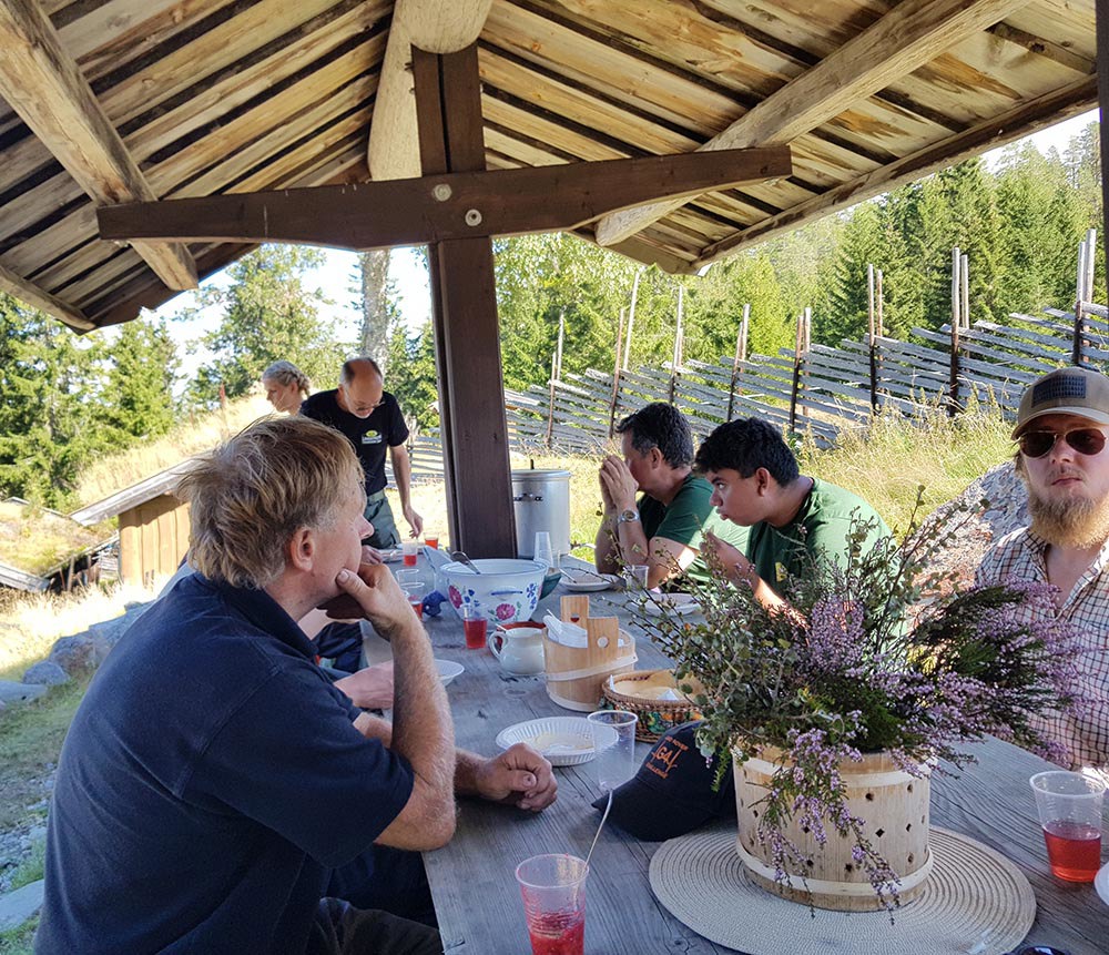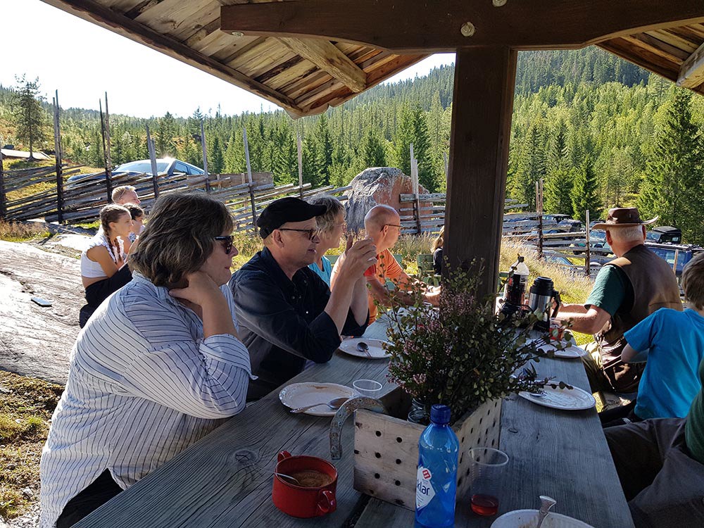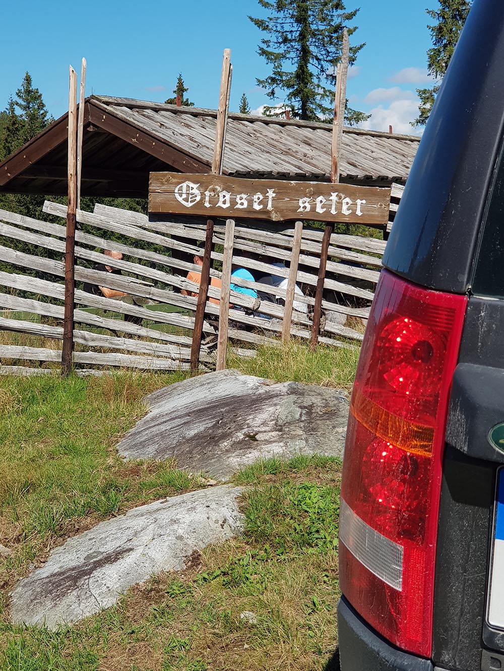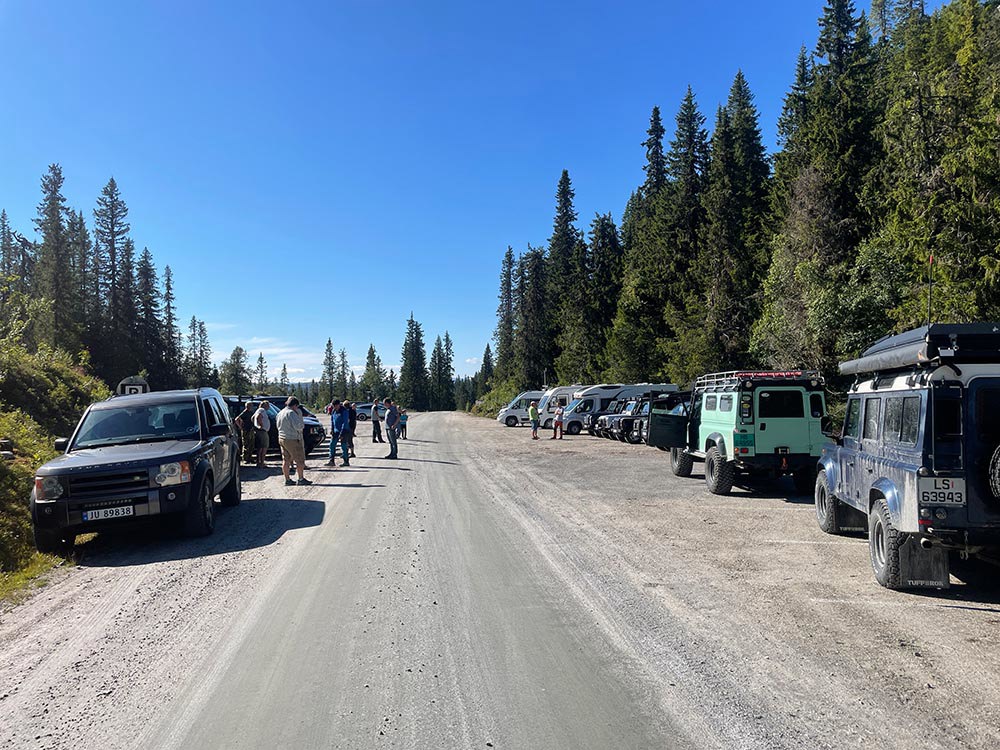 Nattsafari 2022 Årets nattsafari gikk av stabelen i Eggedal nærmere bestemt Grøset seter. Grøset ligger idyllisk til ved foten av Andersnatten og ved inngangen til Trillemarka naturreservat. Siste helgen i august var da denne flotte helgen skulle ta sted. Treffet ble arrangert som et helgetreff, og det var et meget godt oppmøte på fredag. Vi hadde ikke været helt med oss, så vi fikk trekke inn på setra. Det ble fyrt i peisen, og praten gikk. En sosial kveld, med historier og Land Rover prat. På lørdagen startet dagen med frokost i egenregi, og flere Land Rover produkter kom trillende inn på tunet for å være med på dagens kjøreturer. Det ble registrert 19 biler totalt, men alle var ikke med på begge kjøreturene. Totalt var vi ca. 30 personer på setra denne helgen. Det ble arrangert et kortere kjøretur på lørdags formiddag. Da tok vi turen til Madonnaparkeringen, og fikk vist frem et populært turområde. Vi stoppet også for å ta bilder av Narstadborgen, som jeg vil anbefale alle å ta en tur til. Et fantastisk byggverk i Nedre Eggedal. På returen mot Grøset tok vi en kortere stopp på Eggedal mølle, en ikonisk mølle som er i drift på sommerhalvåret. Ved ankomst på Grøset hadde eiere og vertskapet på setra laget klar rømmegrøt. Råvarer og produksjon fra setra, sammen med hjemmelaget prim ble dette en helt super lunsj. Etter lunsjen var det aktiviteter på tunet med øksekast og hestesko kasting. Det var også sauer, kuer og kalver på setra, som ga en fin ramme på campen. Årets nattsafari hadde avreise 17:00 og kolonnen tok turen oppover mot Eggedal, og deretter Djupsjøveien over mot Norefjell skisenter og Noresund. Nede i Noresund, nærmere bestemt Kyllingheimen strand ble det stopp med sveler fra setra, hjemmelaget multe og bringebærsyltetøy, rømme og prim. Svelene fikk bein å gå på, og totalt rensket trau når vi startet bilene igjen og satte retningen mot Sigdal. Vi kjørte over til Eidal, og opp mot Grøset igjen. Nattsafarien gikk noe raskere enn forventet, noe jeg personlig aldri har vært borti før. Dermed tok vi i bruk en liten godbit som undertegnede hadde holdt for seg selv, da jeg ikke visste hvor lang tid vi kom til å bruke på runden. Siste etappe gikk gjennom bommen ved Grøset og innover en grusvei/traktorvei i retning trillemarka. Det ble kjørt noen kilometer innover denne før vi snudde kolonnen, og returnerte til Grøset. Dette ble en meget fin avslutning på nattsafarien. Sosialt rundt bålet utover kvelden med hyggelig selskap og noe godt i glasset. Før alle gikk hvert til sitt. Søndagen var det frokost og avreise. En stor takk til vertskapet til Grøset seter for at vi fikk leie setra, og for at dere laget så god mat til oss. Vi kommer nok igjen!