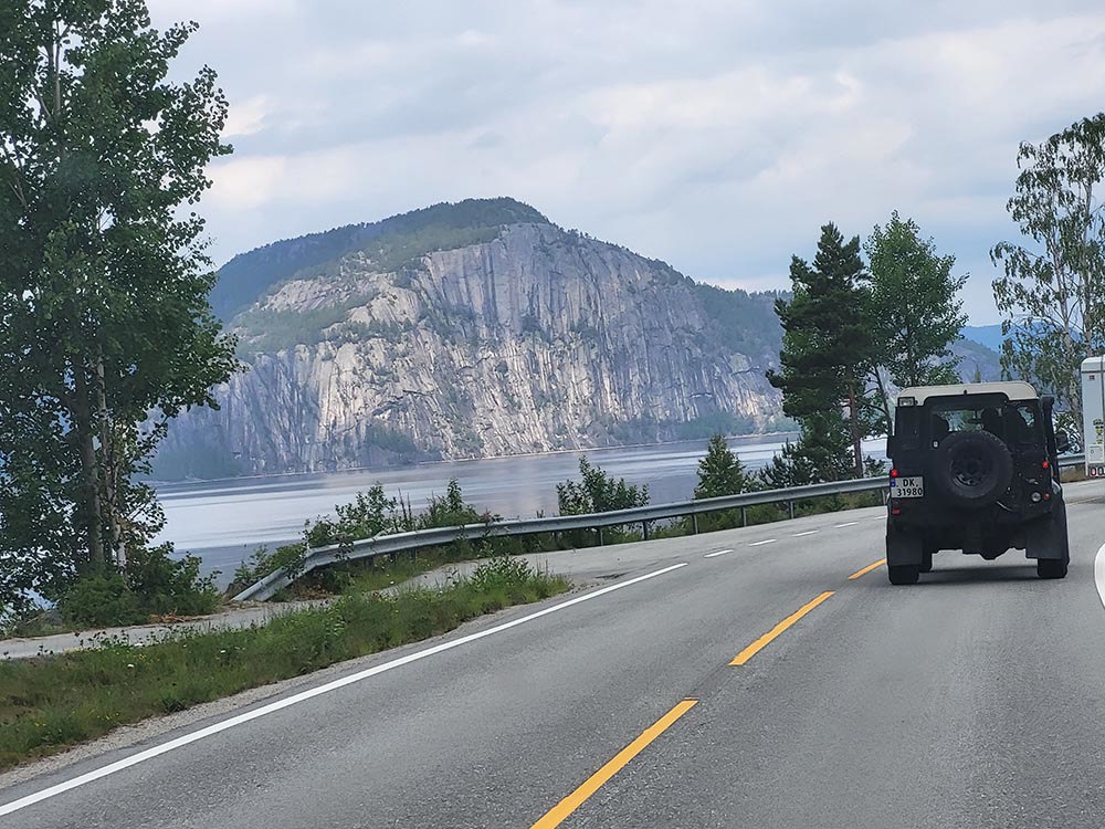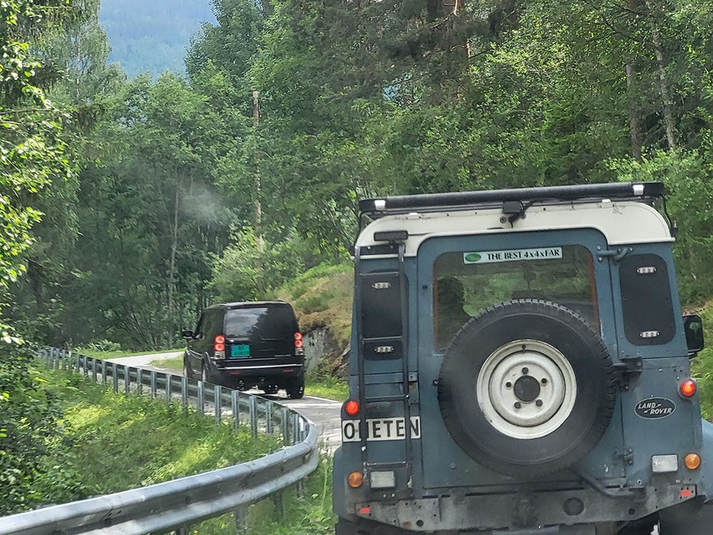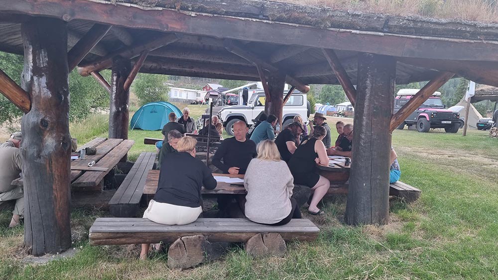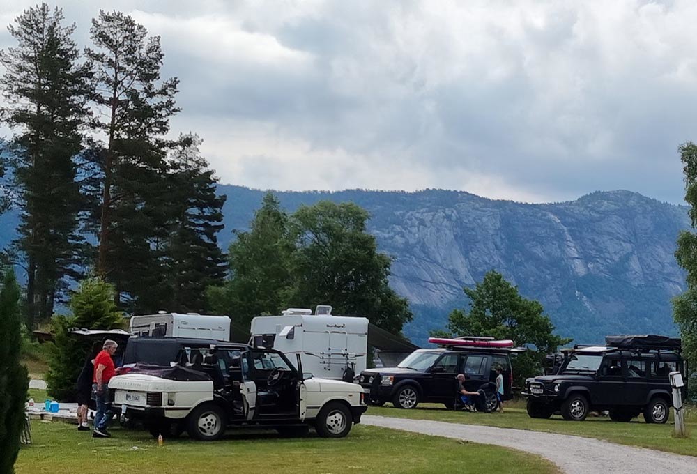 St.hans treffet til avd Sørlandet ble holdt på Nisser Hyttegrend & Camping i den lille bygda Fjone som ligger på vestsiden av innsjøen Nisser i Vest-Telemark. Fredagen begynte folk å innta campen fra tidlig ettermiddag i strålende sol og god temperatur. Utover kvelden kom det flere og flere LR-ekvipasjer. På grunn av litt vind og tørt terreng, ble grillen tent inne i Storgamma som vi hadde leid. Her ble det også litt sosialt utover kvelden. Etter frokost på lørdag så samlet vi folk og hunder i bilene, og la ut på kjøreturen som var planlagt. Vi kjørte til fergeleiet på Fjone, for så å bli skysset over sundet av Norges minste kabelferge. Ferga tar 3 biler om gangen og tar ca 5 minutter en vei. Etter litt venting på at alle 13 bilene skulle komme over, gikk ferden videre mot Vrådal. Vi kjørte over Nord-Europas høyeste beliggende sluse mellom Nisser og Vråvatn, for så å kjøre vestsiden av Vråvatn til Vråliosen. Så gikk turen ned til Bandaksli Brygge. Her hadde vi en rast med fantastisk utsyn over Bandak som er en del av Telemarkskanalen. Neste stopp var Dalen hvor klubben spanderte is på alle som var med på tur. Vi fikk også lov å stå utenfor Dalen Hotel å ta bilde av bilene. Herfra kjørte vi opp mot Skafså og Åmdals Verk, så tok vi over mot Fyresdal. Etter en liten strekk på beina, tok vi fatt på siste etappe på tidvis støvete grusvei forbi Napevatn, for så å komme ned til Fjone igjen. Det ble en (litt for) lang tur for noen, noe vi i styret har notert, men alt i alt var alle fornøyd og enige om at det var steder de ikke hadde kommet på eget initiativ. På kvelden hadde vi felles middag i form av lapskaus som klubben hadde kjøpt inn. Etter at den var fortært, hadde vi samling ute for en liten quiz, som viste seg å skape litt hodebry for noen, men fikk en aha-opplevelse når fasiten ble presentert! Søndag var det igjen frokost, nedrigg og pakking før vi kjørte samlet til Zeiner-museum i Treungen. Her fikk vi se bl.a Norges største Disney-samling, flere sjeldne biler, en kjeks som Roald Amundsen hadde hatt med til Sydpolen, et gullur som hadde tilhørt en russisk Tsar og alt mulig annet. Verd et besøk for noen og enhver. Treffet ble avsluttet her og alle reiste hvert til sitt. Totalt var det 19 biler og ca 40 personer som var med i løpet av helga. Takk for et fint treff, og kanskje vi kan ha flere treff her, det er mange muligheter i området! På vegne av styret i Sør - Audun Slettebakken