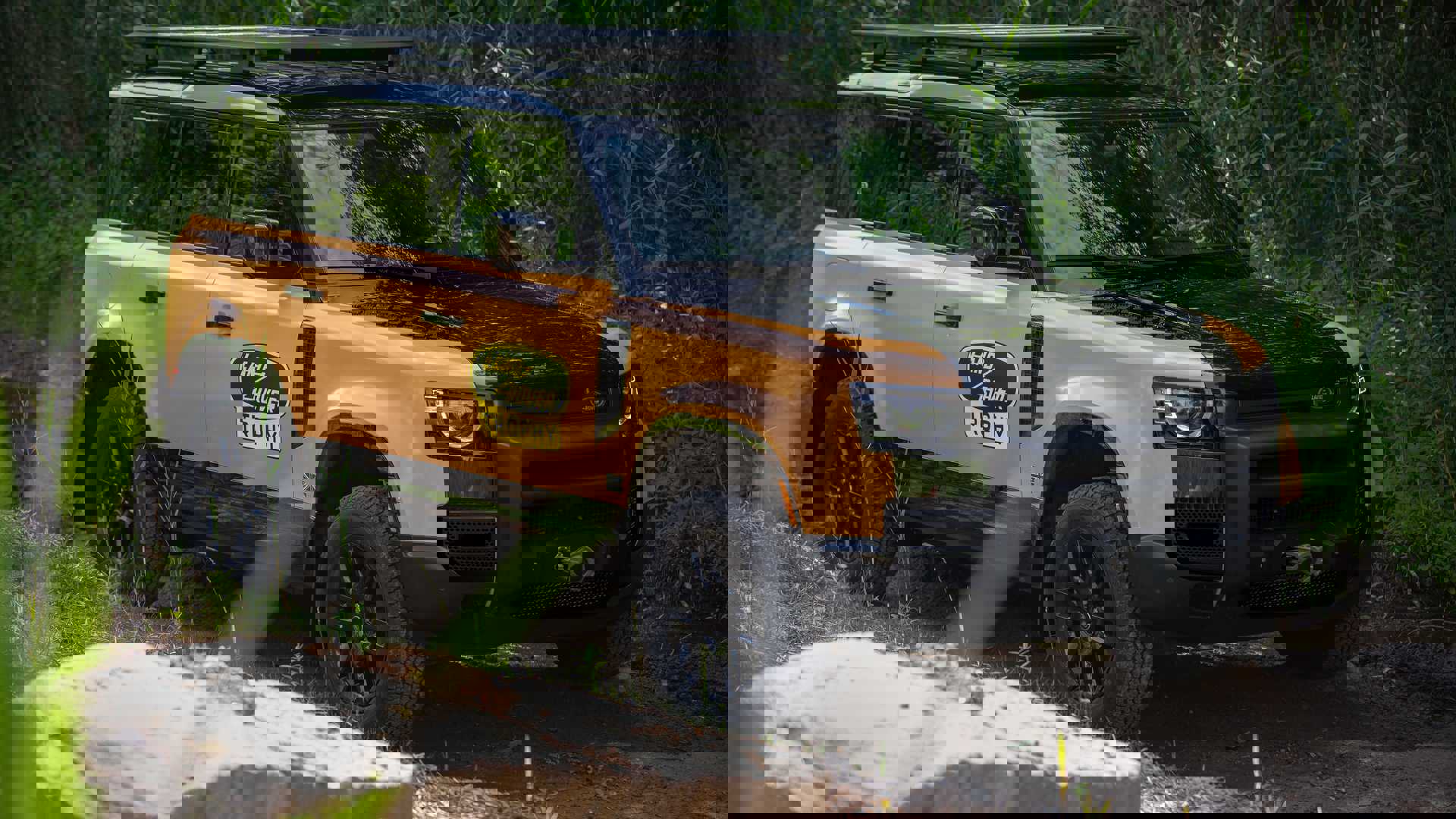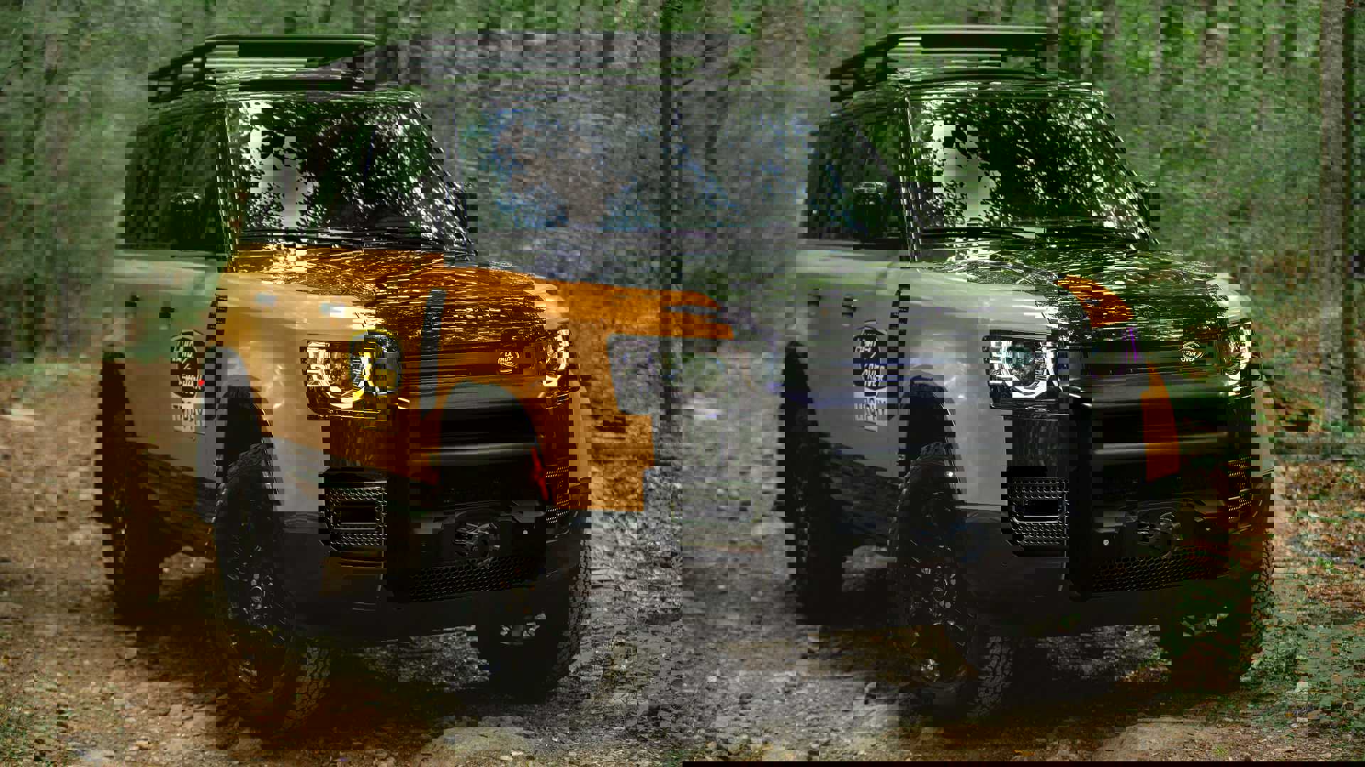 The 2022 Defender 110 P400 X-Dynamic SE is the starting point to the Trophy Edition. On the outside, they receive a wrap in a mix of black and yellow that takes inspiration Defender Works V8 Trophy. This includes the old-school Land Rover logo on the doors.