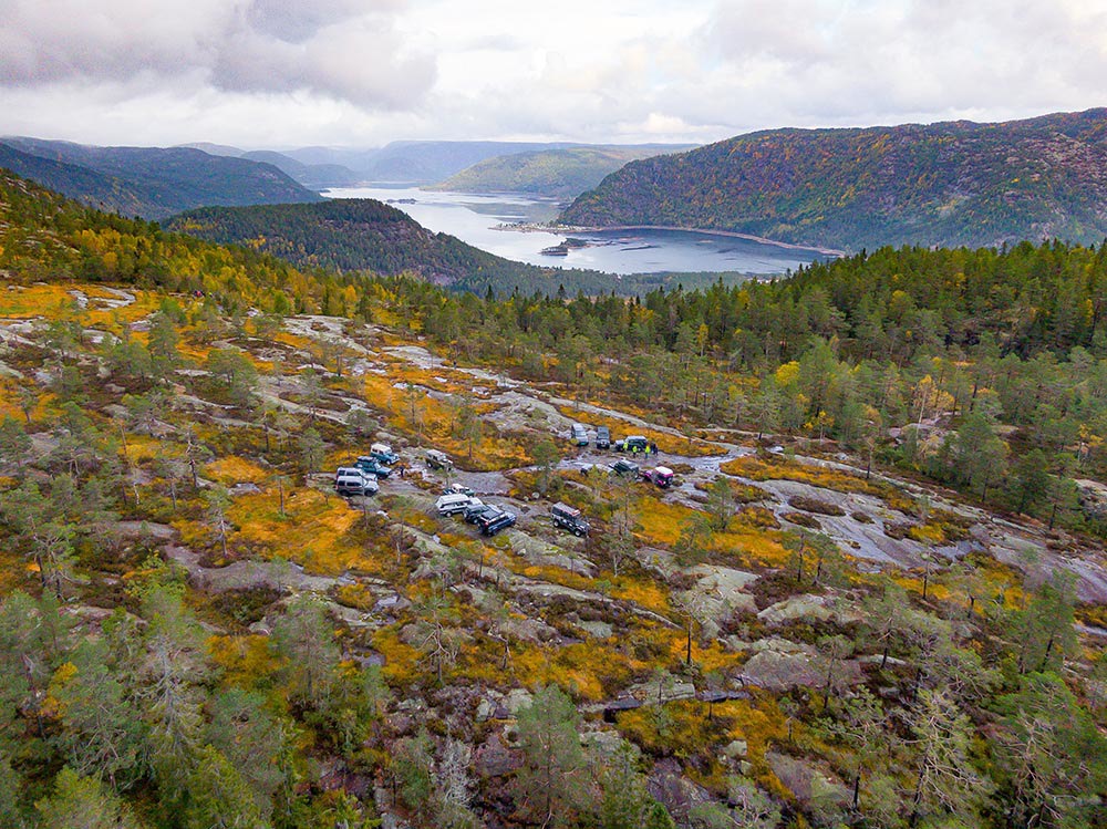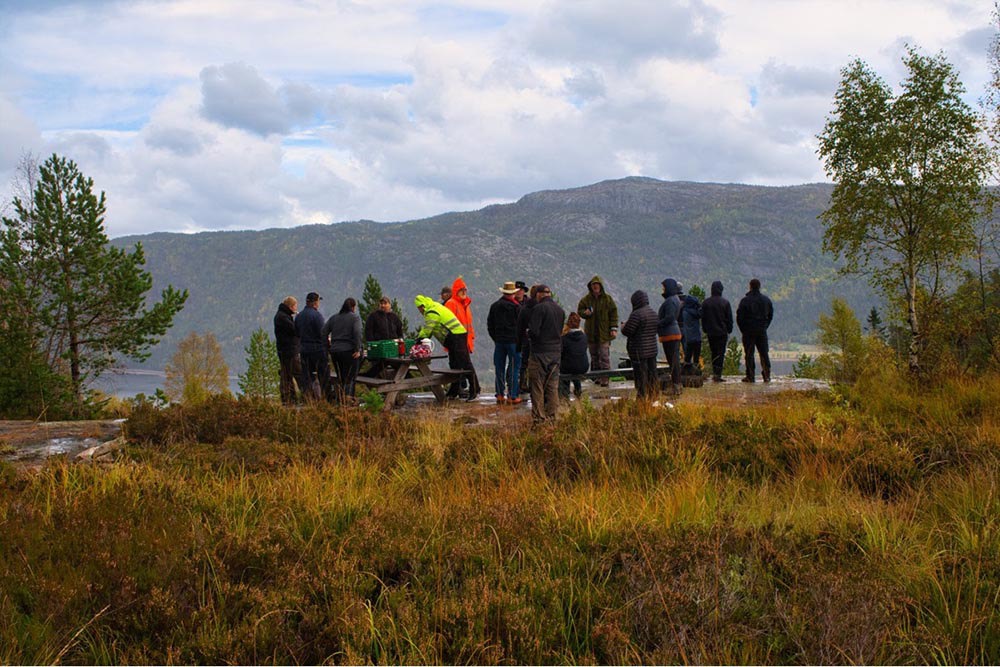 Tross værgudene så var det mange som ikke lot seg skremme av skikkelig vått høstvær. Kveldene tilbrakte vi inne i offisermessa rundt ett langbord med felles grilling. Kjøreturen på lørdagen gikk opp til toppen av den gamle skibakken på Byglandsfjord der det ble en felles kaffe og wienerstenger. Etter dette la vi turen innom. Vi takker alle som kom på treffet og bidro til att det ble ble ett kjempe hyggelig og sosialt treff i den gamle ånden. Foto: Samlet inn fra forskjellige medlemmer