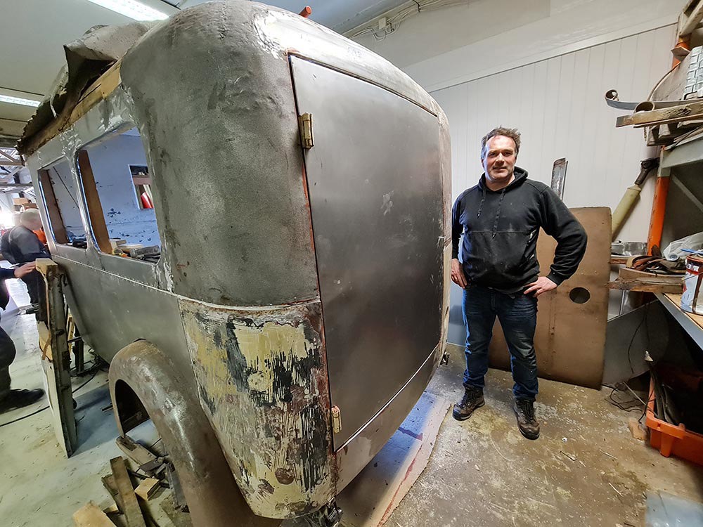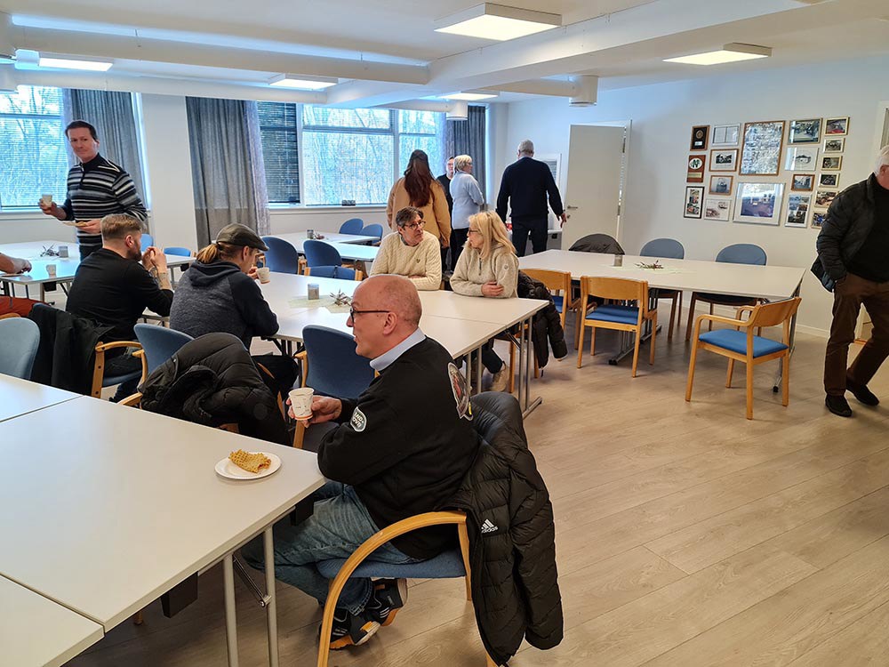 Besøk hos Storfjorden Automobil Klubb (SAK) Kalenderen til NLRK avdeling Møre inviterte våre medlemmer til besøk hos Storfjorden automobilklubb. Dagen var varslet på hjemmesiden til NLRK, facebooksiden til avdelingen, sms og per telefon. Vi stilte med 23 medlemmer 13 LR og RR samt et par sivilister. Vertene stilte med vafler med valgfritt tilbehør og kaffe. Besøket startet med et foredrag om SAK fremført av en av klubbens grunnleggere. Storfjordens automobilklubb er en veteranbilklubb for heile Sunnmøre. Klubben har vokst mye de siste årene. Mener å tro at medlemsmassen har økt med omtrent 25% de siste tre årene. Dette har sikkert sammenheng med at klubben har investert i nytt klubblokale. Antall medlemmer er på øvre halvdel av 400. Lokalet var innkjøpt for i overkant av 8 mill. Klubben har ca. 1400 kvadratmeter til disposisjon. Medlemmer i klubben har gjort en kjempeinnsats på dugnad med tanke på renovering og inndeling. De har møterom, historisk rom, selskapslokaler med enkelt kjøkken (Catering), 4 toaletter, 1 dusj med garderobe, bilhotel, bibliotek med gamle bilblader og verkstedsbøker, 8 mekkeplasser eget mekanisk verksted, pauserom i verkstedet døpt for kompetansesenteret. I verkstedet har de 1 firesøyler og 1 tosøylers løftebukk, dekk omlegger og avbalansering, bremsetester, dreiebenk, smergel pluss pluss. Klubben eier en stigebil overtatt fra en av våre lokale brannstasjoner, en solskinnbuss, en Morris ½ ton 1966 modell varebil og en bil som ble ombygd til gardstraktor. Videre har klubben nylig overtatt to nye prosjekter. En Fiat 501 fra -20 tallet og en Volvo ambulanse fra 1936. Arbeidet med restaurering av ambulansen er i god driv. Klubben favner over alle merker og derfor er mange av medlemmene i SAK også medlem i merkeklubber der de kan være mer merkeorientert. Avdeling Møre har flere medlemmer som er medlemmer i SAK. Klubben har og stort asfaltert uteområde som brukes flittig ved arrangementer. Selskapslokalet kan leies selv om leietager ikke er medlem i klubben. Bilhotellet har plasser inntil 4 meter, 5 meter og over 5 meter lengde. Disse leies ut på åremål. Det er ca. 35 plasser totalt, men kun en eller to som er ledig. Leien betales med månedlige avdrag. Mekkeplassene leies ut på månedsbasis. Link til klubbens hjemmeside er http://www.934e62a3.lag247.no/ Link til en videosnutt fra et dagstreff i klubben https://www.youtube.com/watch?v=hv5_c1PIKPQ