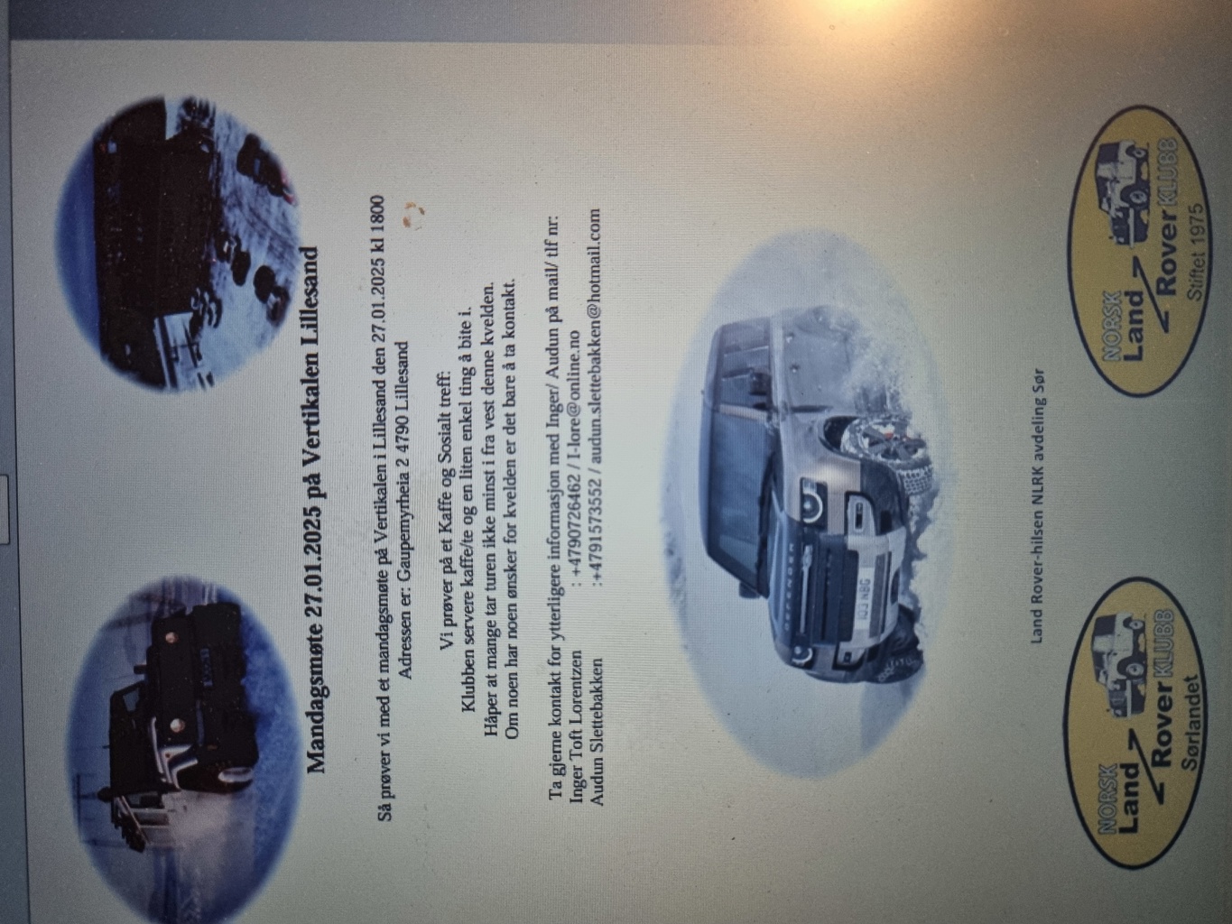 Så prøver vi med et mandagsmøte på Vertikalen i Lillesand den 27.01.2025 kl 1800